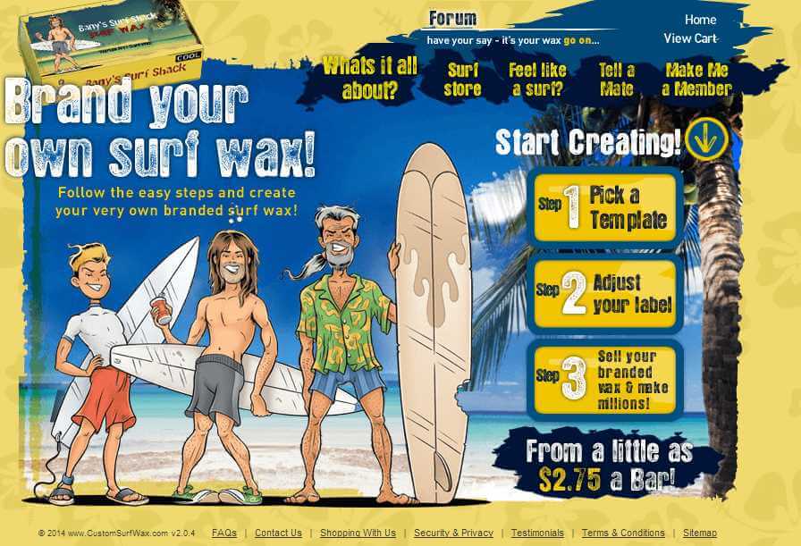 Custom surf wax is a website where users can customise the design for their own branded surf board wax.